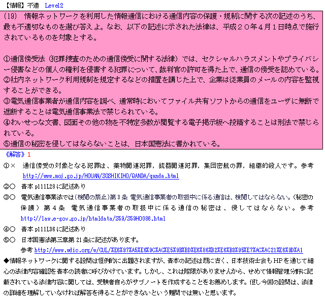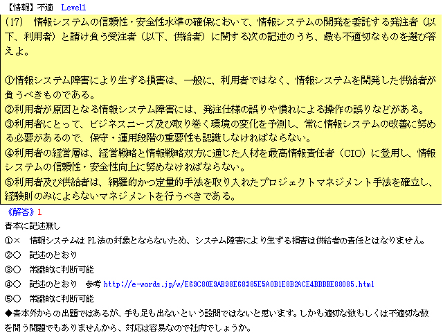 自らの勉強と同時に、些かなりとも総監受験者の方々のお役に立てればと思いアップさせて頂きましたが、間違いは無かったのでしょうか???