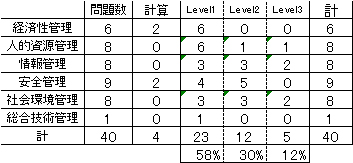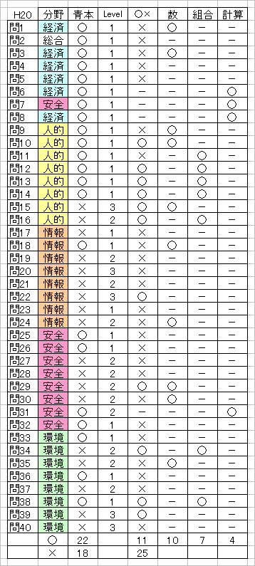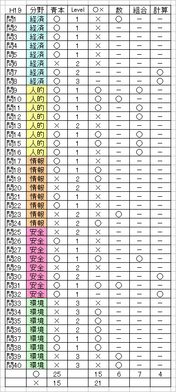 H20,19両年度とも5つの管理分野からまんべんなく出題されていることが分かります。