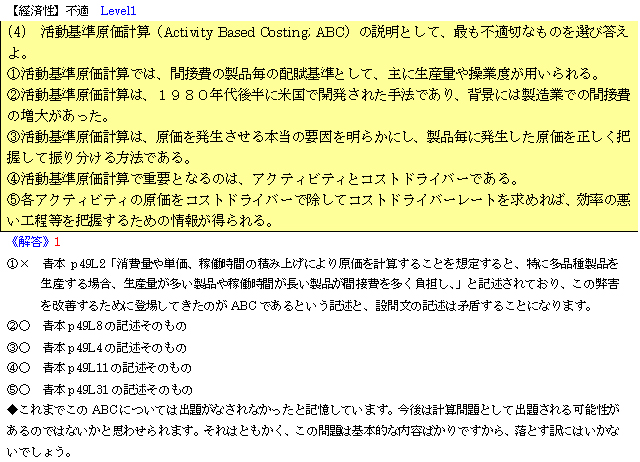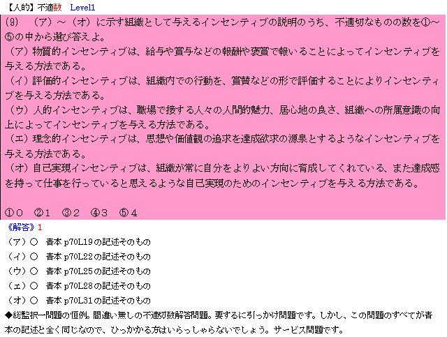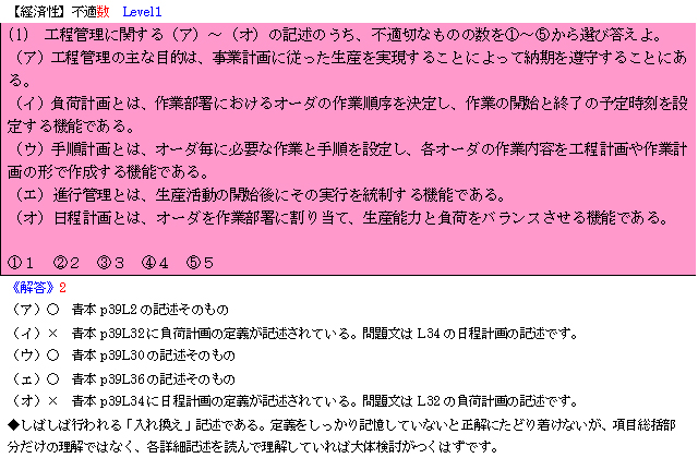 Level2・・・青本だけで正解を得るのは困難だが、青本記載の法律関連情報を加えれば正解できるレベル、或いは総監的視点で判断をすれば正解に到達できるレベルの問題