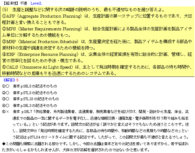 ※設問文それぞれについて「適切」と「不適切」を判断し、適切な組合せを答える問題については「適」と標記してありますのでご注意下さい。